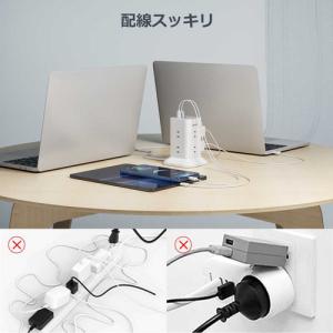 - 電源タップ タワー mini型 2m 延長コード 8個AC コンセント 3USBポート付き 180°スイングプラグ TESSAN テーブルタップ たこ