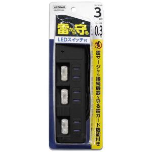- ヤザワ 雷ガード付3個口節電タップ0.3m ブラック H8KS3303BK [0.3m]
