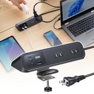 - 電源タップ クランプ固定式タップ AC4個口 USB-C×3 USB-A×1 PD65W対応 2m ブラック TAP-B114UC-2BK サンワサプライ