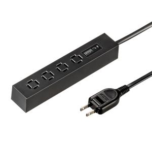 - エレコム 電源タップ AC 2口 + USB4ポート 1.5mケーブル USBタップ コードタップ コンセント 延長コード タップ OAタップ ブラック 1.5m┃ECT-0415BK