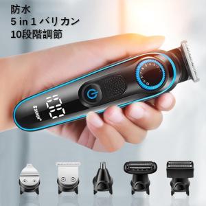 - セルフカット 電気バリカン 子供可 USB充電式 切れ味抜群 コードレス 電池残量表示 水洗OK 5段階刈り高さ調節 4種類アタッチメント