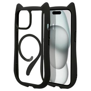 - ラスタバナナ iPhone15/ 14/ 13用 猫耳ハイブリッドケース TPU×PC MAGSAFE対応(ブラック) 8346IP361HPMBK 返品種別A