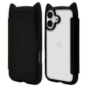 - ラスタバナナ iPhone16用 MIMI 猫耳手帳型ハイブリッドケース(ブラック) 8101IP461BHPBK 返品種別A