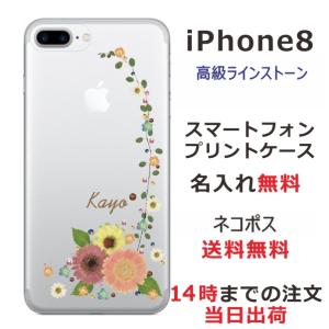 - iPhone8 ケース アイフォン8 カバー ラインストーン かわいい らふら フラワー 花柄 押し花風 ポップフラワー
