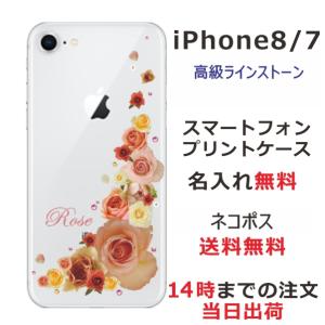 - iPhone8 ケース アイフォン8 カバー ラインストーン かわいい らふら フラワー 花柄 押し花風 バラ