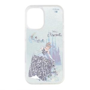 - ingrem イングレム iPhone 16 ディズニー 衝撃吸収 バンパー 動く キラキラ ラメ グリッターケース シンデレラ_ブルードレス