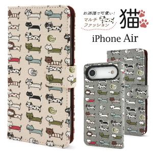iPhone Air アイフォンエアー 専用 猫ねこネコ 手帳型ケース カードポケット付 保護カバー ねこ生地×レザー 動物プリント iphoneair アイホンエアー 2025年
