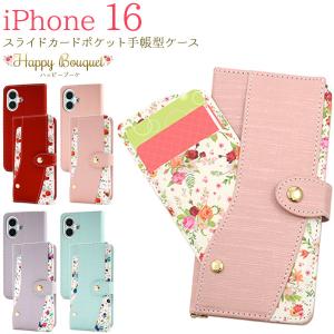 iPhone16シリーズ対応 フラワーブーケ 手帳型ケース スライドカードポケット付き アイフォンケース iPhone16 / iPhone16Pro /iPhone16Plus / iPhone16ProMax