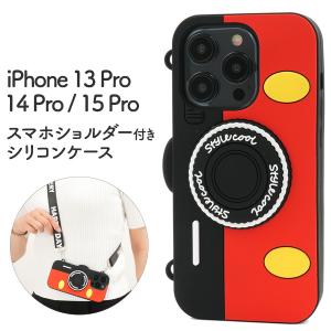 iPhone15 Pro / iPhone14 Pro/ iPhone13 Pro共通 ショルダーストラップ付き シリコンケース 保護カバー カメラ型 アイフォン アイホン iPhone15Pro 6.1インチ