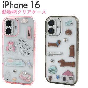iPhone16 シリーズ対応 動物シール柄 クリアケース ジャケット バックカバー 透明 アニマル アイフォン iPhone 16 iPhone16Pro iPhone16Plus iPhone16ProMax