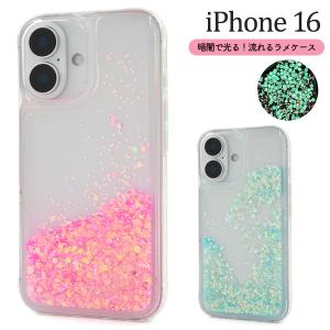 iPhone16 シリーズ対応 暗闇で光る きらきら流れるラメケース 透明 クリア ソフトケース バンパー カバー iPhone 16 iPhone16Pro iPhone16Plus iPhone16ProMax