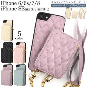スマホショルダーケース iPhoneSE(第2・第3世代) iPhone8 iPhone7 iPhone6/6S 共通 キルティングレザー 背面マグネット ポーチ付 アイフォンケース 爆買