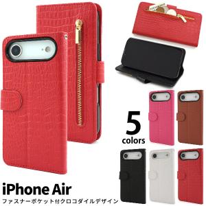 iPhone Air アイフォンエアー 専用 クロコダイルレザー 手帳型ケース ファスナーポケット付き レザーケース 保護カバー お財布 iphoneair アイホンエアー 2025