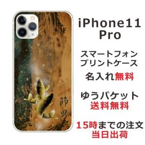 - iPhone11 Pro ケース アイフォン11プロ カバー らふら 名入れ 和柄 黄金双鯉