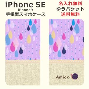 iPhone SE 第2世代 手帳型ケース アイフォンSE ブックカバー らふら 北欧デザイン パープル しずく