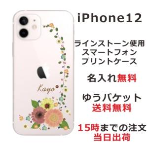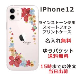 - iPhone12 ケース アイフォン12 カバー ラインストーン かわいい フラワー 花柄 らふら 名入れ 押し花風 春花