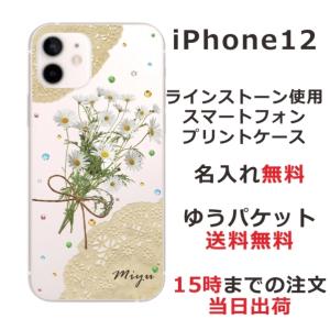 - iPhone12 ケース アイフォン12 カバー ラインストーン かわいい フラワー 花柄 らふら 名入れ 押し花風 マーガレットレース