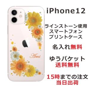 - iPhone12 ケース アイフォン12 カバー ラインストーン かわいい フラワー 花柄 らふら 名入れ 押し花風 クレッシェンドイエロー