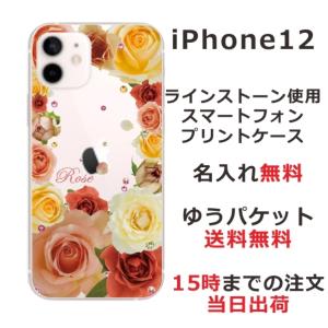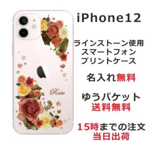 - iPhone12 ケース アイフォン12 カバー ラインストーン かわいい フラワー 花柄 らふら 名入れ 押し花風 バラ