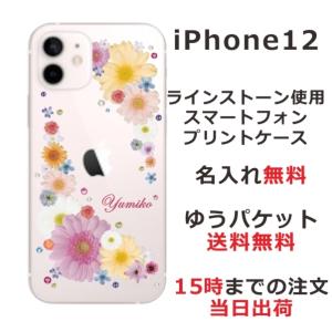 - iPhone12 ケース アイフォン12 カバー ラインストーン かわいい フラワー 花柄 らふら 名入れ 押し花風 クレッシェンドカラフル