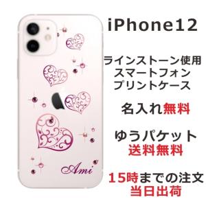 - iPhone12 ケース アイフォン12 カバー ラインストーン かわいい らふら 名入れ グラデハート