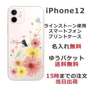 - iPhone12 ケース アイフォン12 カバー ラインストーン かわいい フラワー 花柄 らふら 名入れ 押し花風 フラワーアレンジカラフル