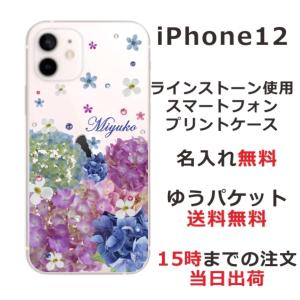 - iPhone12 ケース アイフォン12 カバー ラインストーン かわいい フラワー 花柄 らふら 名入れ 押し花風 パープルアレンジ