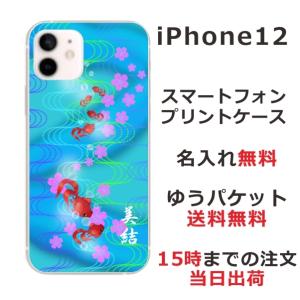 - iPhone12 ケース アイフォン12 カバー らふら 名入れ 和柄 金魚