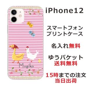 - iPhone12 ケース アイフォン12 カバー らふら 名入れ あひる にわとり 行進