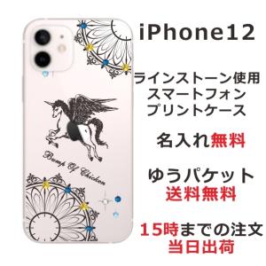- iPhone12 ケース アイフォン12 カバー ラインストーン かわいい らふら 名入れ ユニコーン