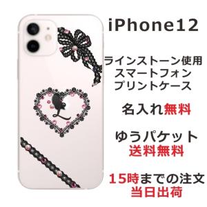 - iPhone12 ケース アイフォン12 カバー ラインストーン かわいい らふら 名入れ ハートレース