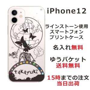 - iPhone12 ケース アイフォン12 カバー ラインストーン かわいい らふら 名入れ スカルワールド