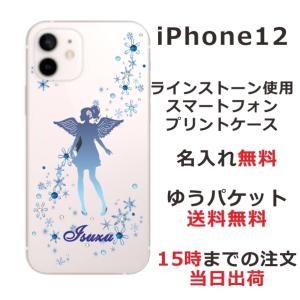 - iPhone12 ケース アイフォン12 カバー ラインストーン かわいい らふら 名入れ エンジェル