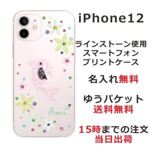- iPhone12 ケース アイフォン12 カバー ラインストーン かわいい らふら 名入れ ドルフィン