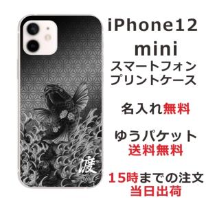- iPhone12 Mini ケース アイフォン12ミニ カバー らふら 名入れ 和柄 昇り鯉黒