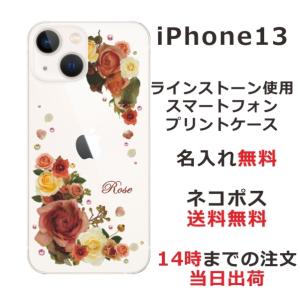 - iPhone13 アイフォン13 らふら 名入れ スマホケース ラインストーン スマホカバー 押し花風 バラ