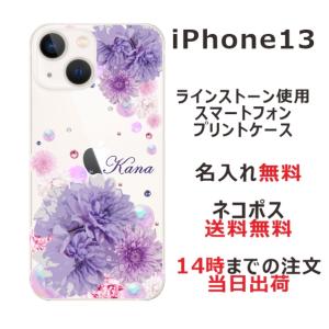 - iPhone13 アイフォン13 らふら 名入れ スマホケース ラインストーン スマホカバー 押し花風 クレッシェンドパープル