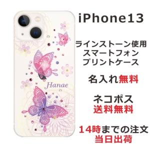 - iPhone13 アイフォン13 らふら 名入れ スマホケース ラインストーン フライングバタフライ