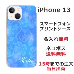 - iPhone13 アイフォン13 らふら 名入れ スマホケース ハイビスカスブルー