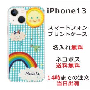 - iPhone13 アイフォン13 らふら 名入れ スマホケース レインボーチェックブルー