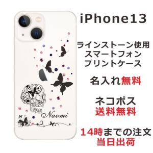 - iPhone13 アイフォン13 らふら 名入れ スマホケース ラインストーン スカルバタフライ