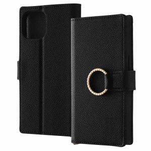 - iPhone 15 / 14 / 13 耐衝撃 手帳型レザーケース KAKU Ring/ブラック