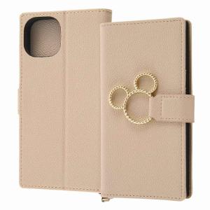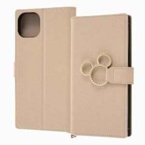 - iPhone 14/ 13 『ディズニーキャラクター』/耐衝撃 手帳型レザーケース KAKU Ring/ミッキー_ミツマル/ベージュ