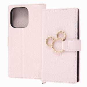 - iPhone 14 Pro Max 『ディズニーキャラクター』/耐衝撃 手帳型レザーケース KAKU Ring/ミッキー_ミツマル/ピンク