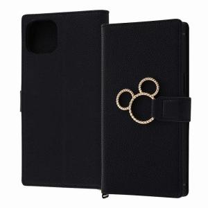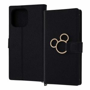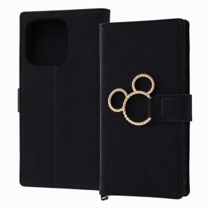 - iPhone 14 Pro Max 『ディズニーキャラクター』/耐衝撃 手帳型レザーケース KAKU Ring/ミッキー_ミツマル/ブラック