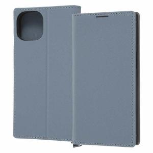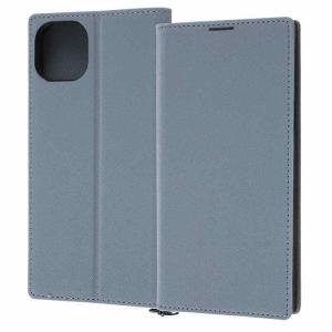 - iPhone 14 Plus 耐衝撃 手帳型レザーケース KAKU Durable/ブルー/ライトグレー