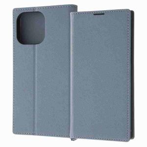 - iPhone 14 Pro Max 耐衝撃 手帳型レザーケース KAKU Durable/ブルー/ライトグレー