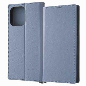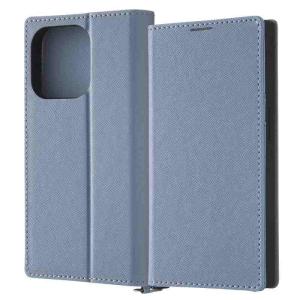 - iPhone 15 Pro 耐衝撃 手帳型レザーケース KAKU Durable/ブルー/ライトグレー