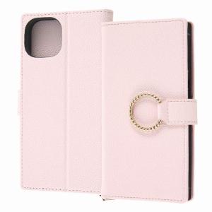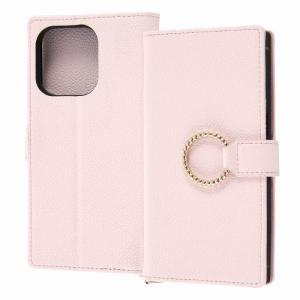 - iPhone 14/ 13 耐衝撃 手帳型レザーケース KAKU Ring/ピンク