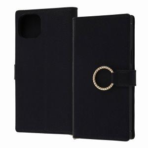- iPhone 14/ 13 耐衝撃 手帳型レザーケース KAKU Ring/ブラック
